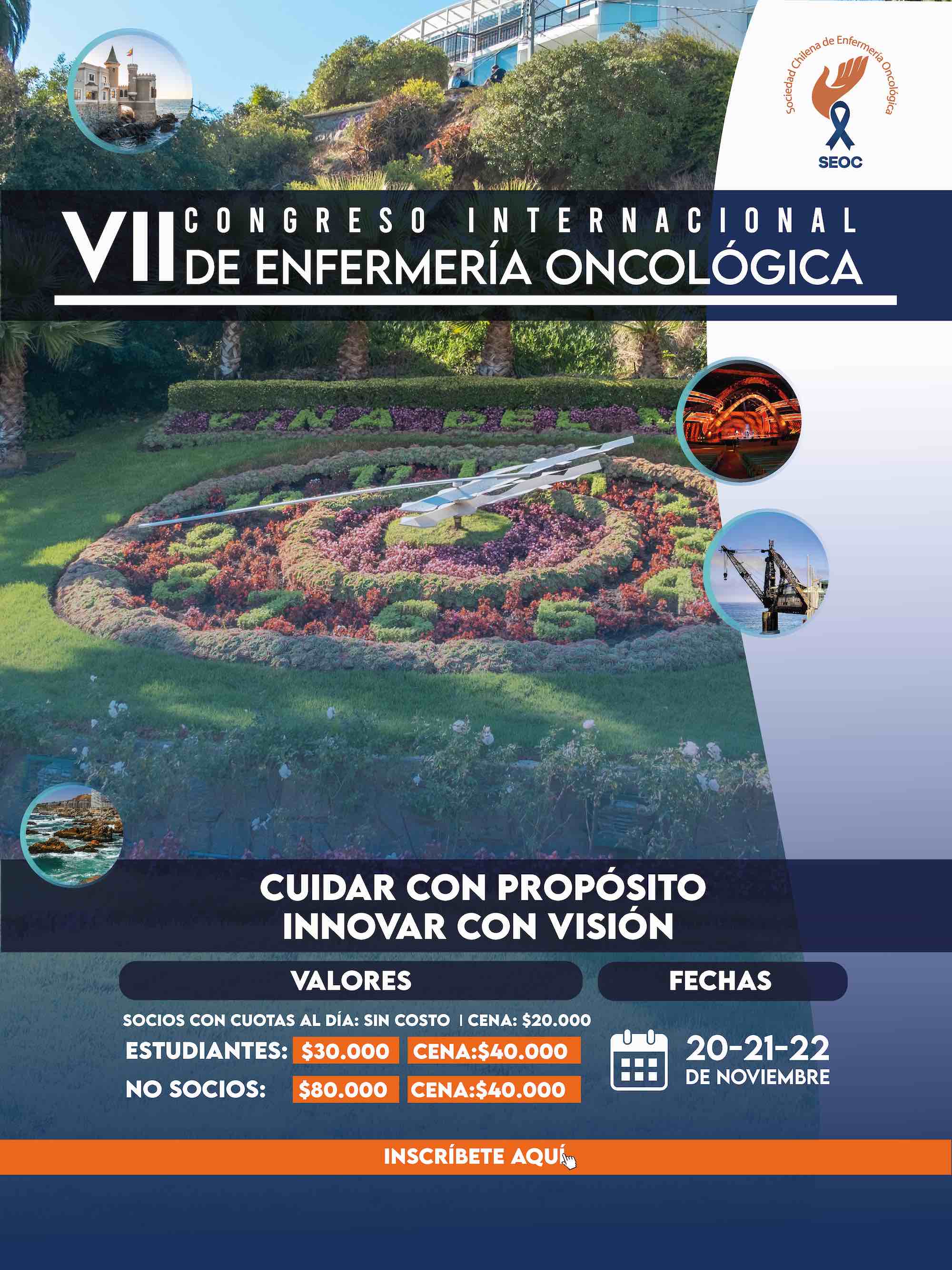 Durante los días 20, 21 y 22 de noviembre Viña del Mar se convierte en el punto de encuentro donde compartiremos los últimos avances en la gestión de los cuidados oncológicos, con el objetivo de seguir fortaleciendo nuestro rol y proyectando la enfermería hacia el futuro.